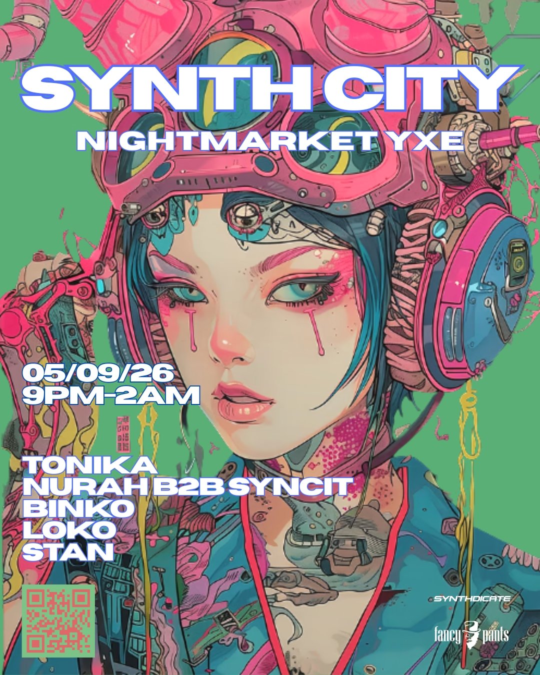 On Saturday May 9th, Synthdicate and Fancy Pants proudly present SYNTH CITY at Nightmarket YXE.